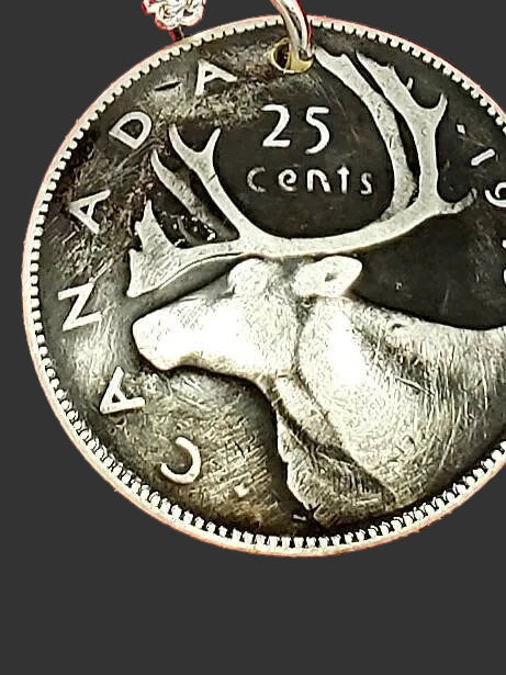 Canadian silver quarter necklace with antique finish transforms a piece of Canadian numismatic history into wearable art. This necklace features an authentic silver quarter suspended from an 18-inch sterling silver chain, finished with an antique patina that enhances its vintage character. The coin's intricate details are preserved and showcased, creating a conversation-starting accessory that blends heritage with contemporary style. Perfect for collectors, history enthusiasts, or anyone seeking meaningful jewelry with substance and story.