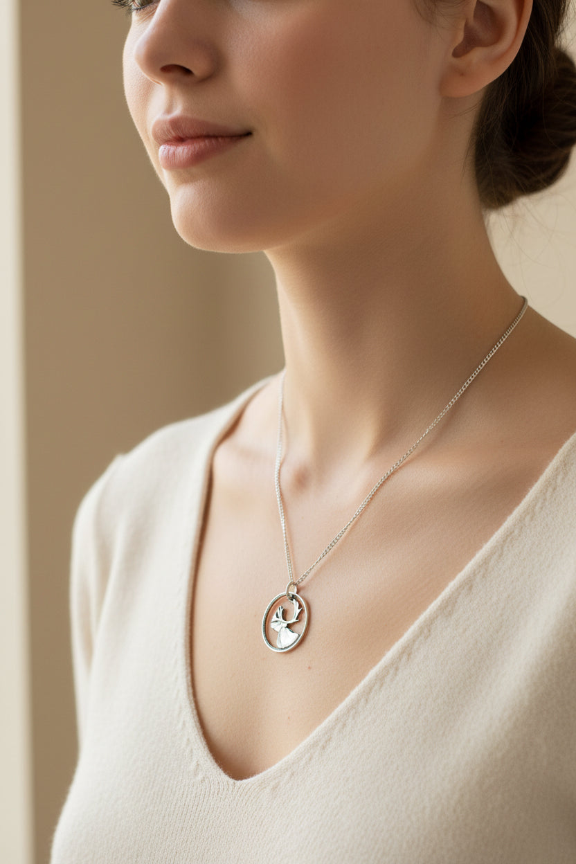 This stunning silver pendant is a testament to both craftsmanship and the beauty of the Canadian landscape. Each piece is uniquely hand-carved from an authentic silver quarter, revealing intricate details of a majestic caribou. Wear a piece of Canadian wilderness with this one-of-a-kind, handcrafted treasure. Each pieces will be slightly different from the pictures, as each one is carved by hand. Included is an 18", Italian sterling silver chain.