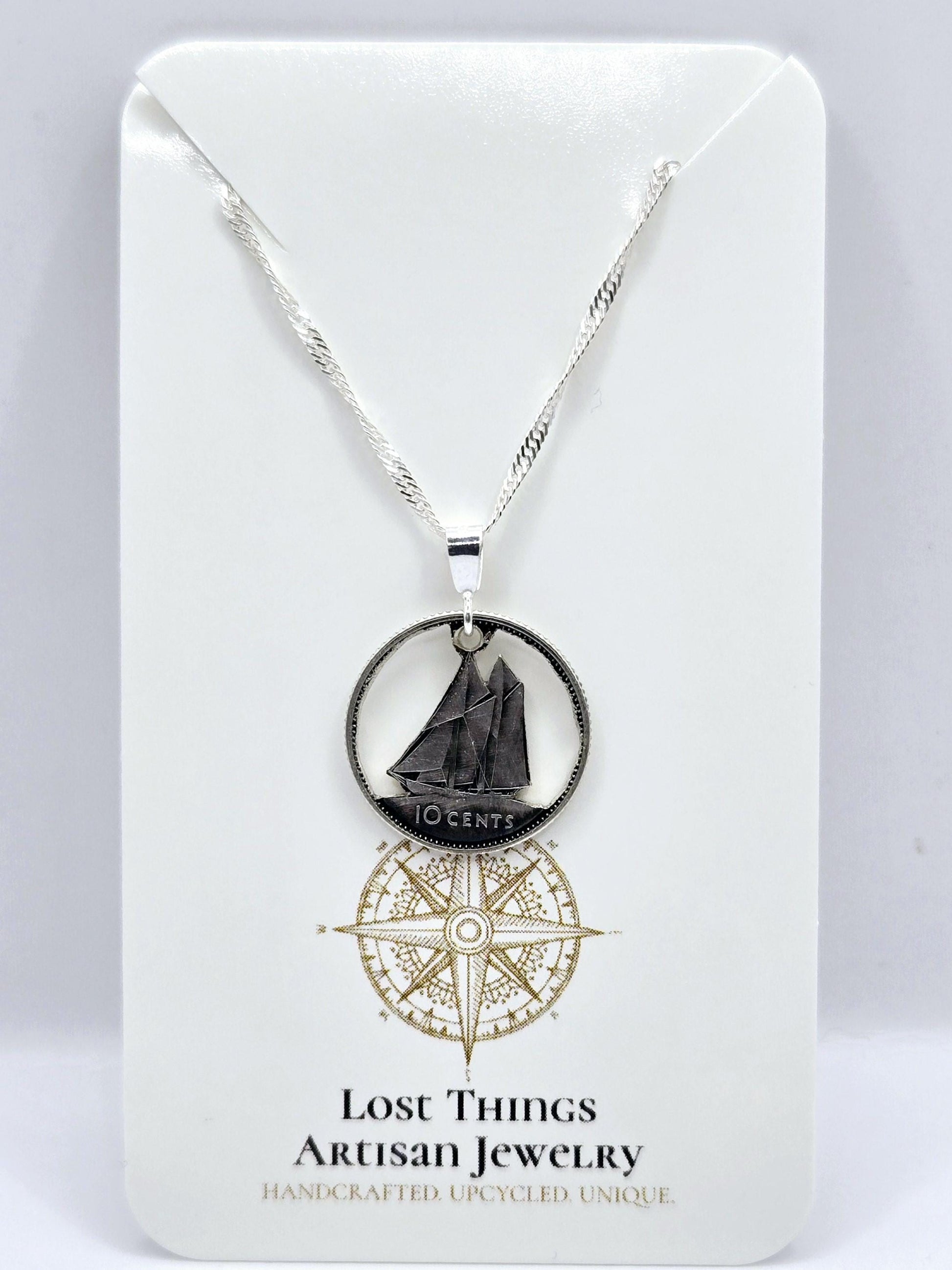 Find beauty in the unexpected. This hand-carved silver pendant, crafted from a discarded Canadian dime, is a testament to the power of transformation. Each piece tells a story – a story of history, artistry, and the enduring beauty of found objects. The dimes minted prior to 1967 and they are .80 silver. Included is an 18", Italian sterling silver chain. The pictures are a sample of what you are ordering. Each piece is hand cut so no 2 are the same.