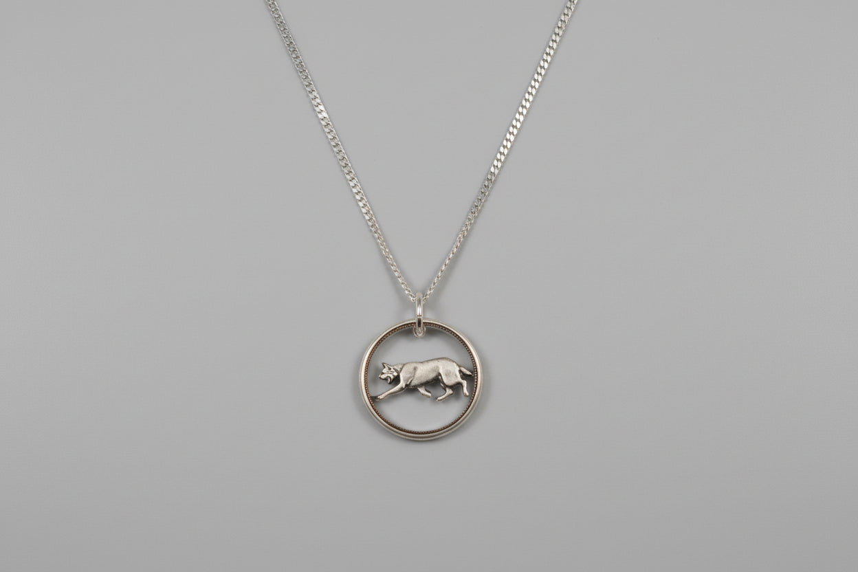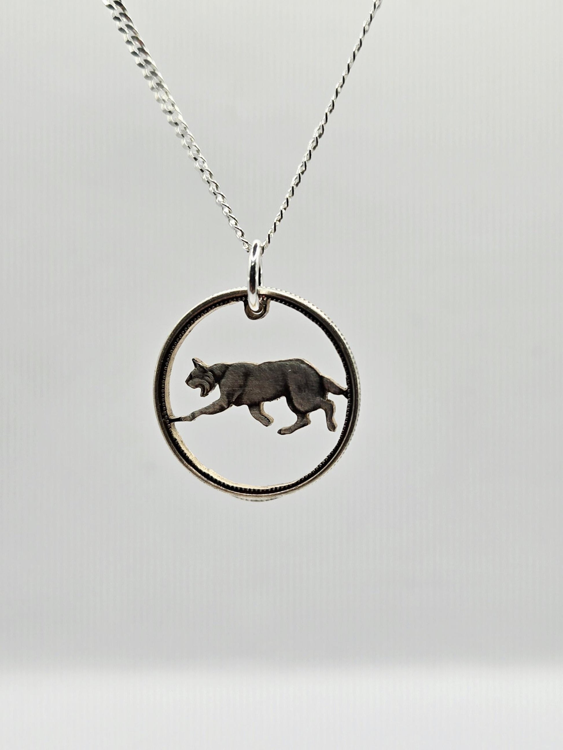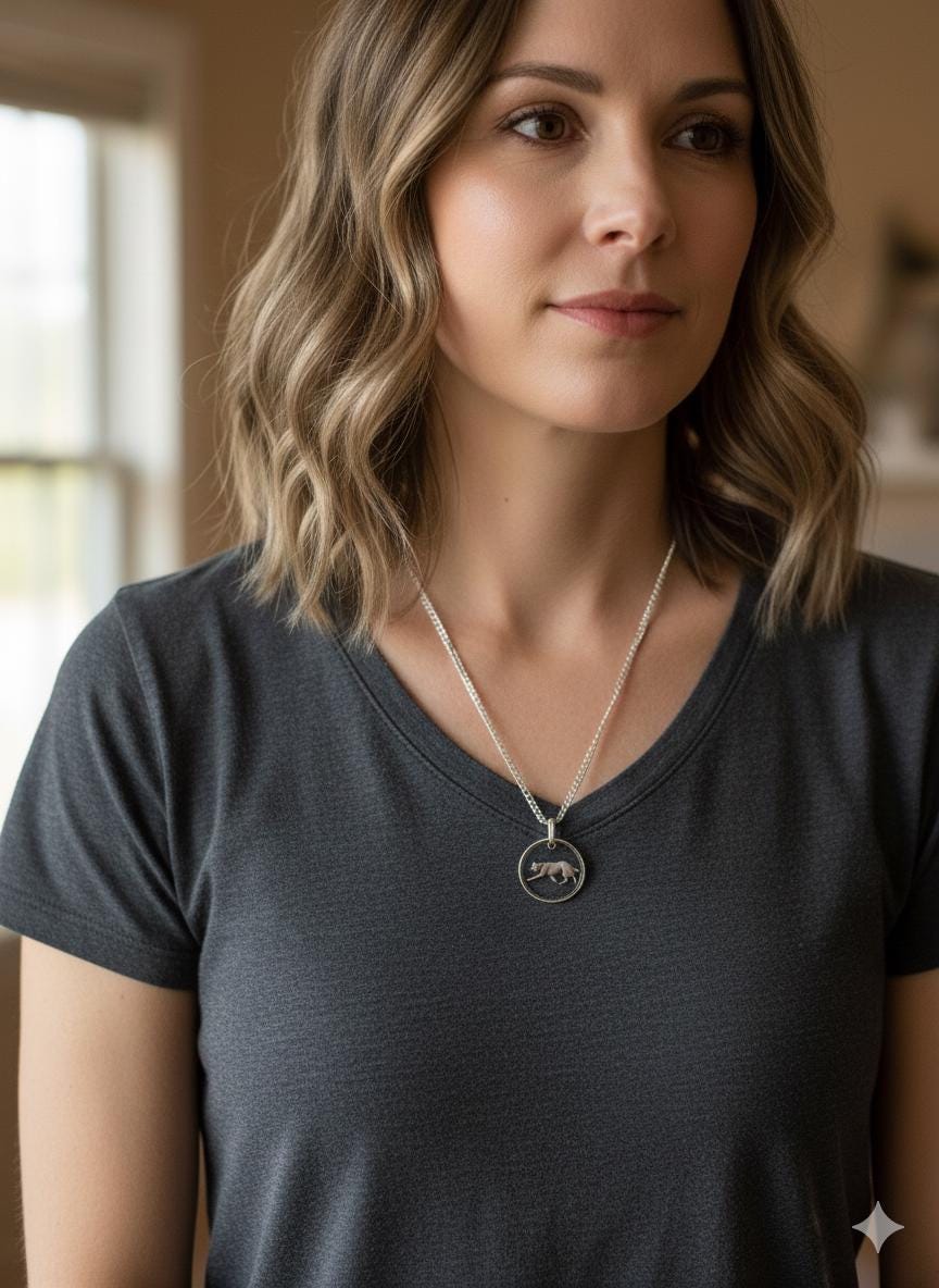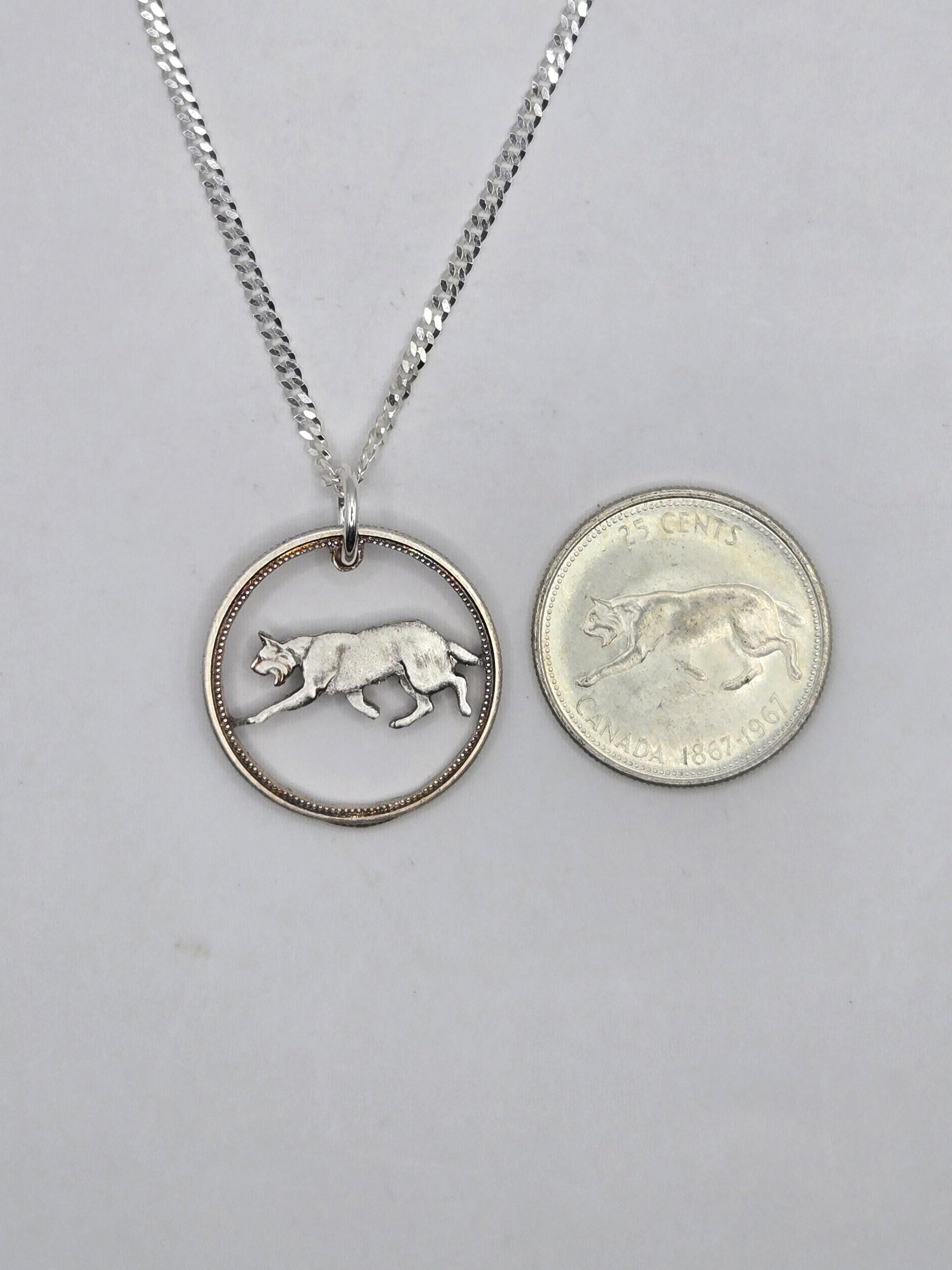 This necklace features a genuine 1967 Canadian Silver Quarter, meticulously hand-cut to highlight the iconic "Prowling Lynx" design. Issued for Canada’s Centennial year, this coin is a favorite among collectors for its sleek, mid-century modern aesthetic designed by artist Alex Colville.