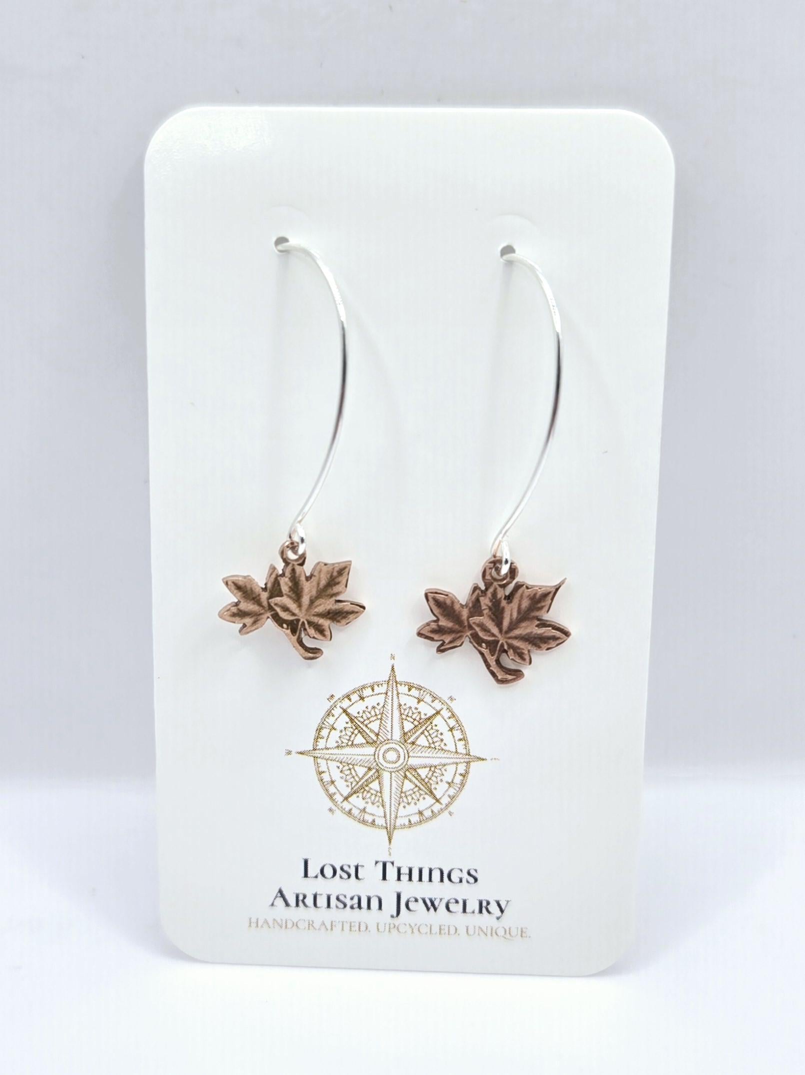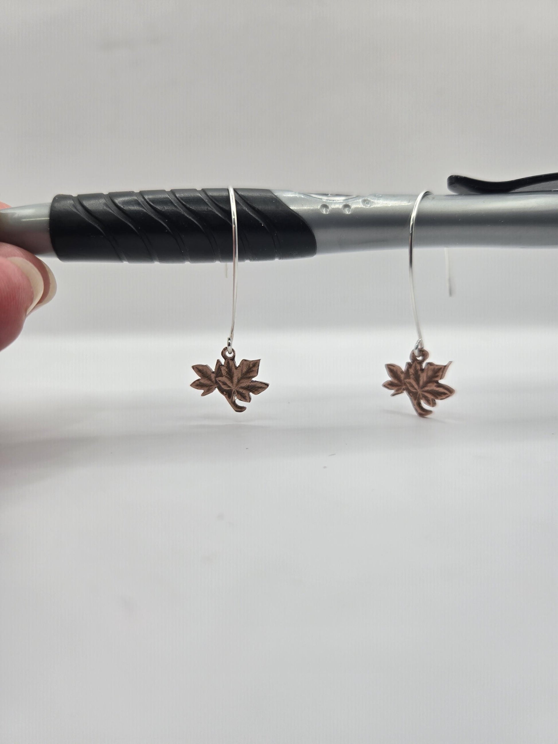 Celebrate your love for Canada with these distinctive earrings. Each earring features a genuine copper penny that has been meticulously hand-carved to showcase a beautiful maple leaf design. The warm, vintage hue of the penny contrasts beautifully with the sleek shine of the sterling silver earring wires, ensuring both style and comfort. These earrings are a testament to skilled craftsmanship and a subtle nod to national pride.