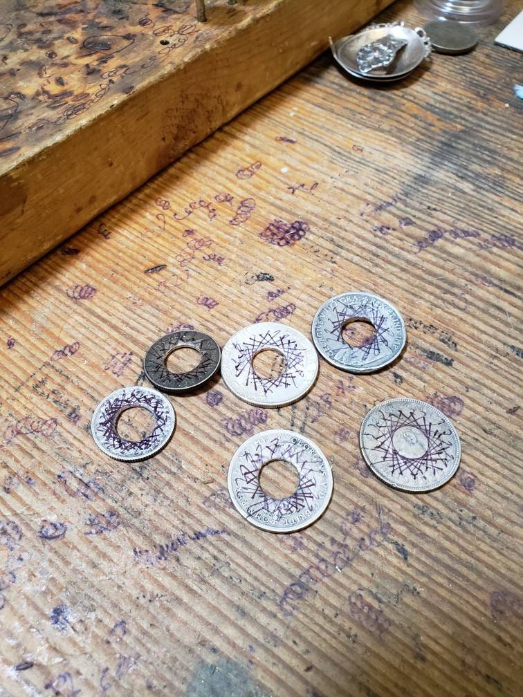Crafted from authentic Canadian currency, this spinner ring combines a genuine silver quarter with a century-old Canadian penny, creating a piece rich in historical significance. The rotating band offers both tactile engagement and a tangible connection to Canada's numismatic heritage. Each ring is individually handmade, ensuring the coins are securely set while maintaining their patina and character. Perfect for collectors, history enthusiasts, or anyone seeking meaningful jewelry with a story. A distinctive accessory that transforms forgotten currency into wearable art.
