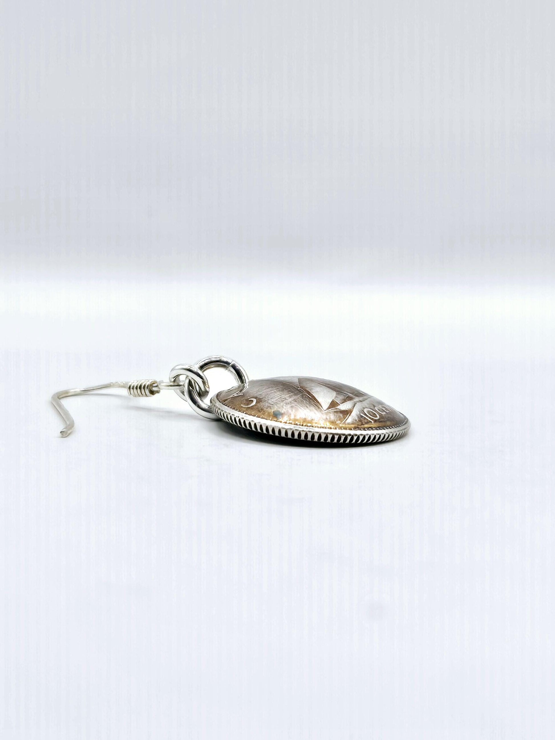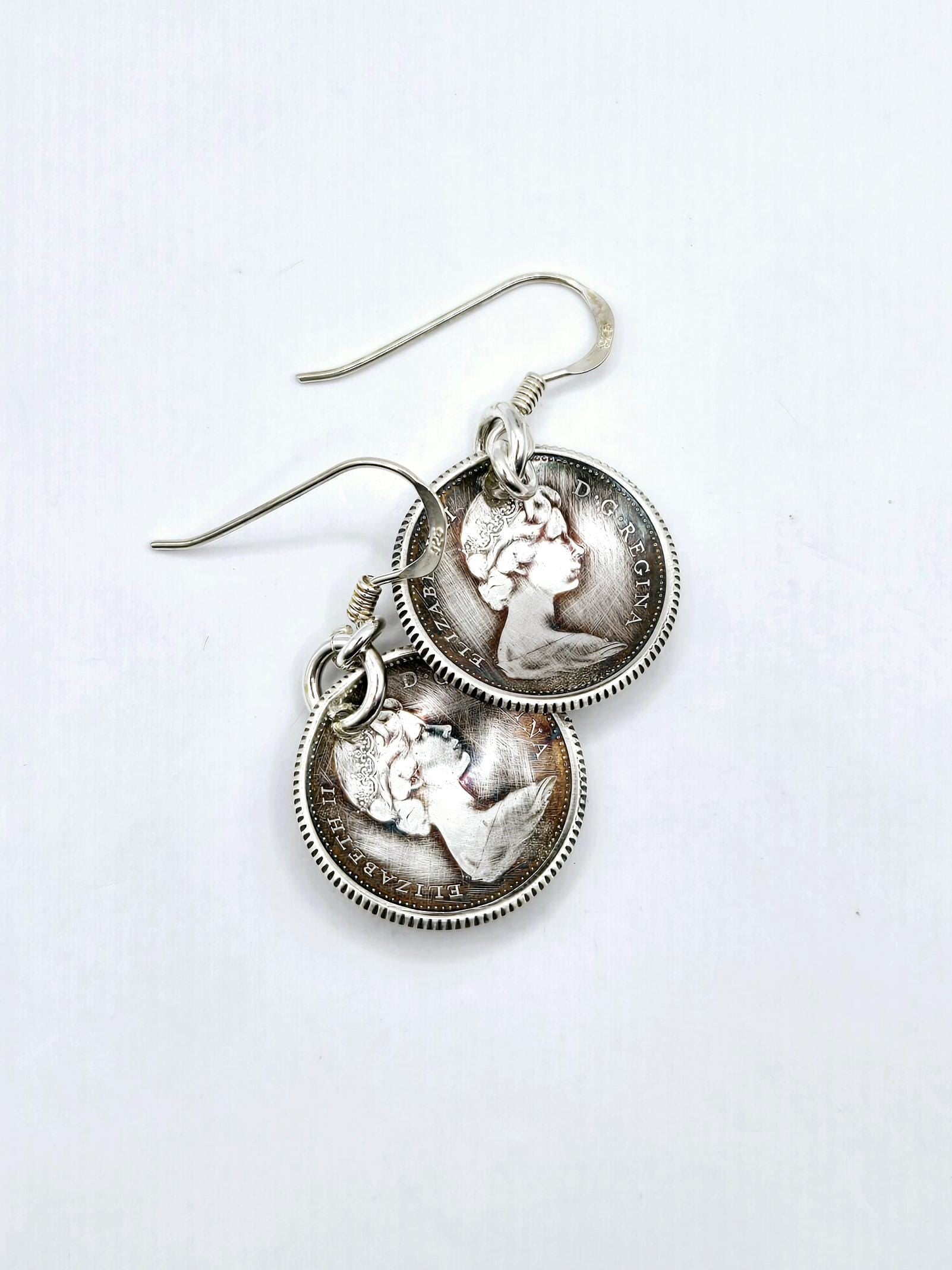 Elevate your jewelry collection with a piece of North American history. These unique drop earrings are meticulously handcrafted from authentic Canadian dimes minted in 1966 or earlier, back when the Royal Canadian Mint used genuine silver for its currency.